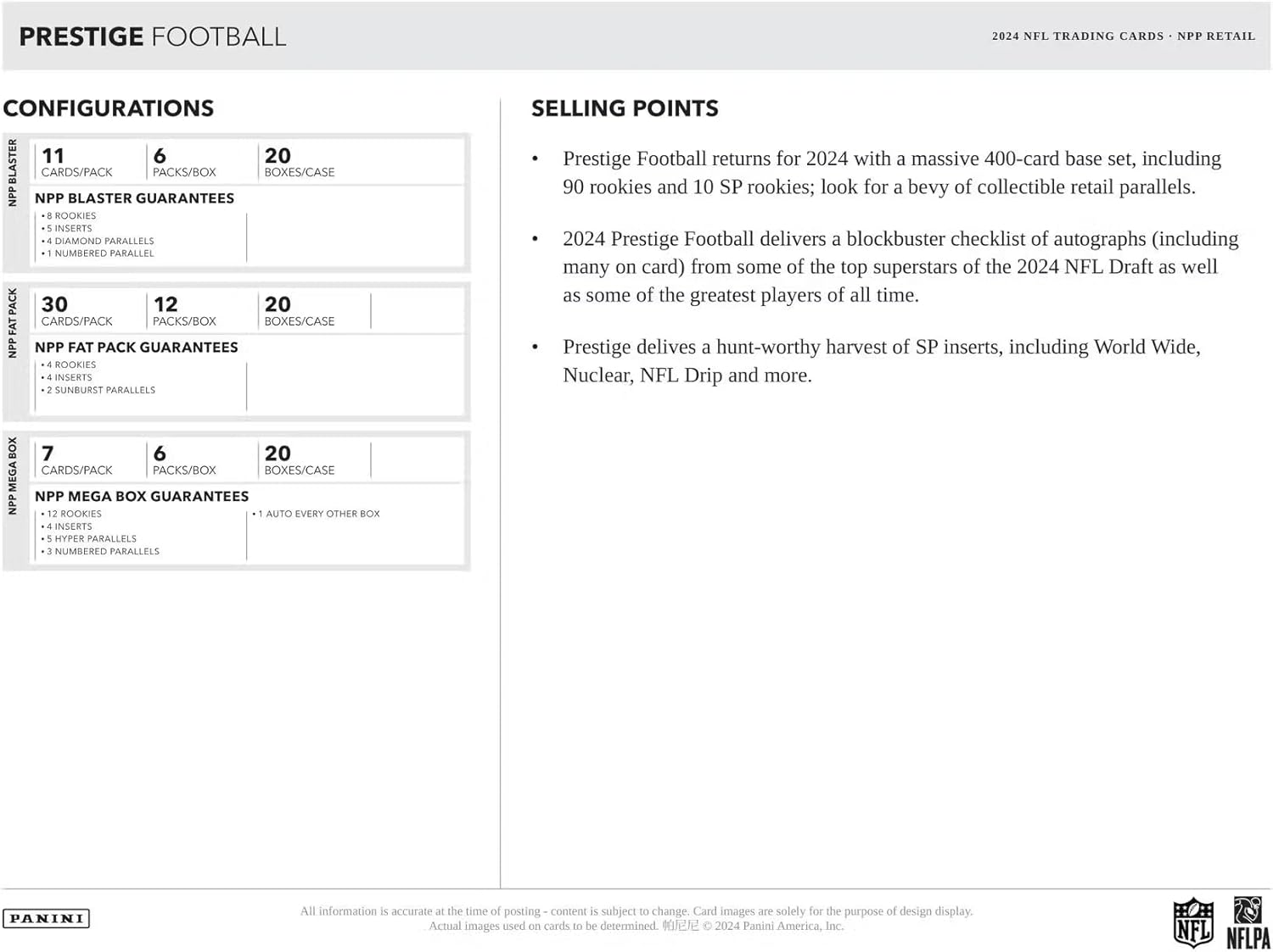 2024 Panini Prestige Football 24-Pack Trading Card Retail Box (24 Packs Per Box, 10 Cards Per Pack)