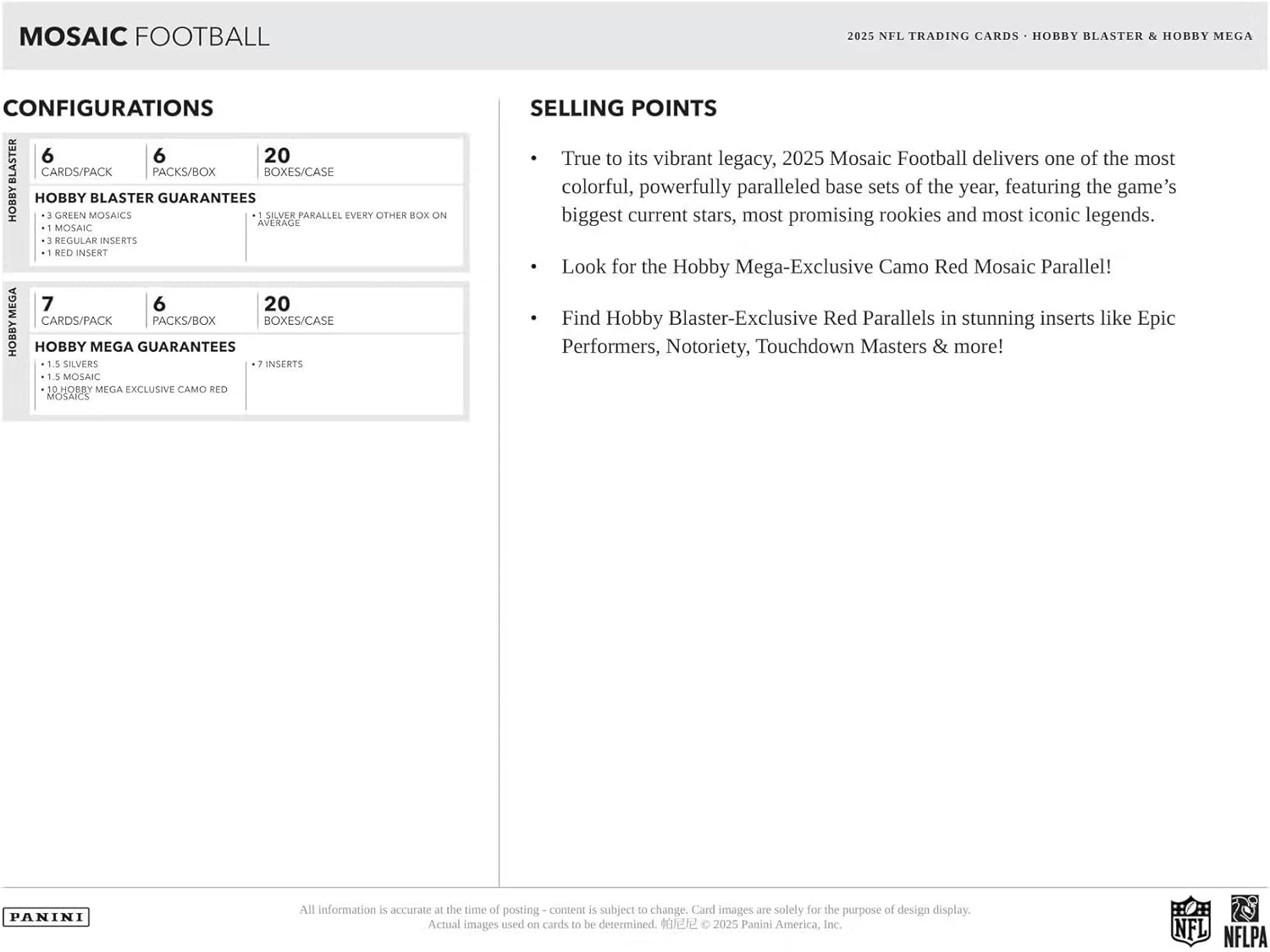 2025 Panini Mosaic Football Hobby Mega Trading Card Box (10 Exclusive Camo Red Mosaics Per Box)