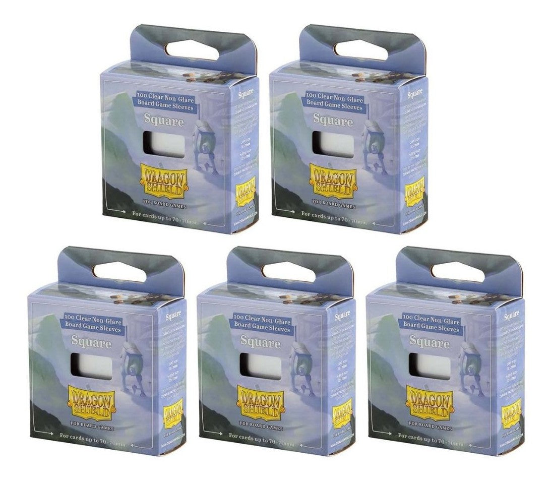 5 Packs Dragon Shield Board Game Sleeves 100 ct Square Size Card Sleeves Value Bundle!
