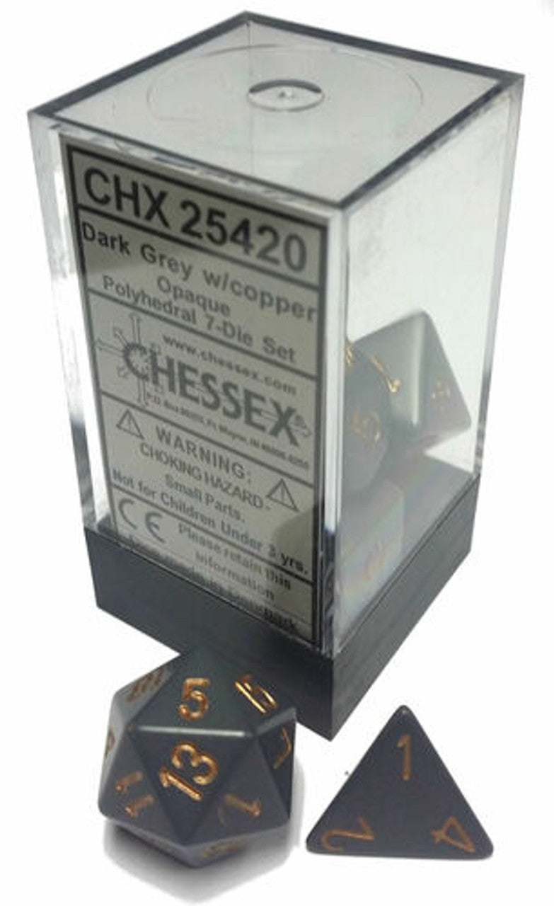 Chessex Dice: Opaque Polyhedral Dark Grey/Copper (7)
