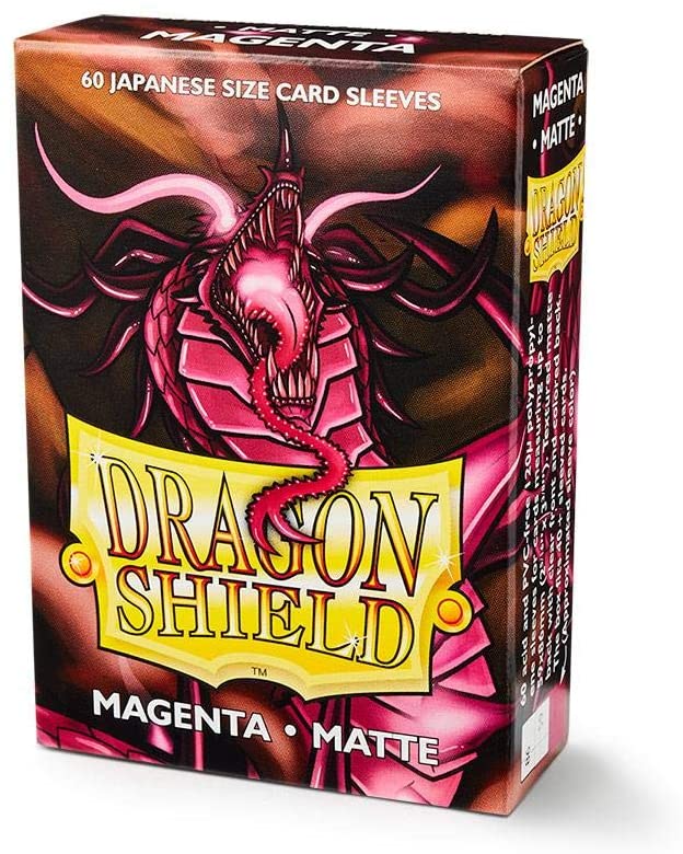 Clear front & Magenta back. Metallic luxury in the palm of you hand. Matte Mini Japanese sleeves are our popular line of textured Dragon Shield with superior handling. A perfect mix of durability and shuffle-ability.