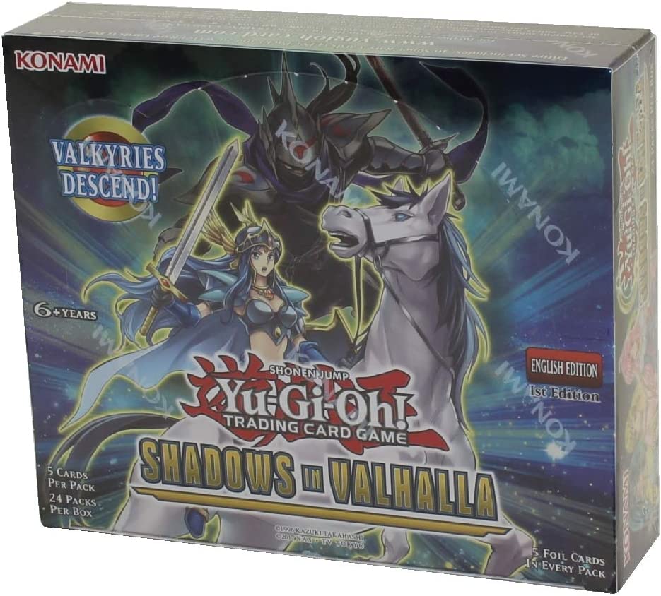 24 packs per box, 5 cards per packSound the horns of battle and prepare to Duel! In the twilight of Summer 2018, Shadows over Valhalla will bring Duelists the opportunity to change their own fate and wield the incomparable Mischief of the Time Goddess! Once thought to be too powerful to ever be printed in real life, this classic Spell Card from the original Yu-Gi-Oh! anime skips your opponents turn completely and moves the game to your next Battle Phase.