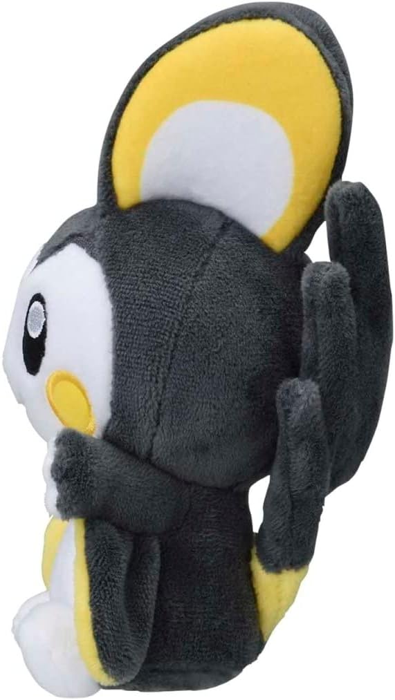 The Emolga Sitting Cuties Plush is weighted with microbeads, so it sits up when you put it on a flat surface. This palm-sized plush is a fun, charming way to show off a favorite Electric- and Flying-type Pokemon originally discovered in Unova!