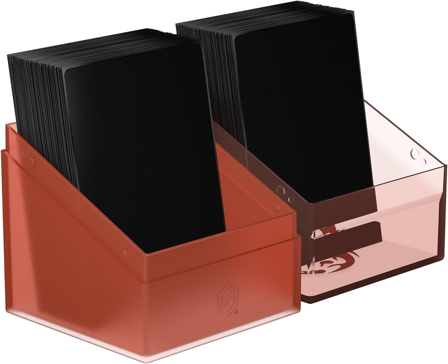 Ultimate Guard’s Boulder 100+ Hybrid combines the completely transparent top of the Boulder Clear with a soft-touch base in the style of the original Boulder. The officially licensed MTG deck box is easy to open, but offers reliable protection for your cards thanks to a sturdy casing and secure closure. The Boulder 100+ Hybrid holds almost up to 100 cards in a double-sleeved case and is suitable for all Magic: The Gathering formats such as Commander, Standard or Modern.