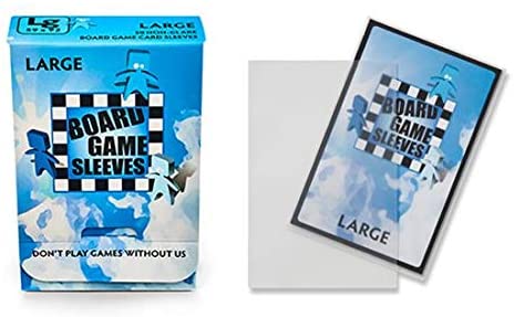 Clear front & back. For cards measuring up to 59 mm ? 92 mm (2 5/16" x 3 9/16"). This size is typical for large cards in most European board games like for example 'Dominion', 'Kingdom Builder', 'Uluru', 'Agricola' and many more. The cardbox safely stores 50+ sleeved cards, and doubles as a card-holder during play. Just flip back the lid and lock it in place! Contains 50 clear card sleeves in 80? polypropylene, with a soft non-reflective matte treatment. No acid. No PVC.