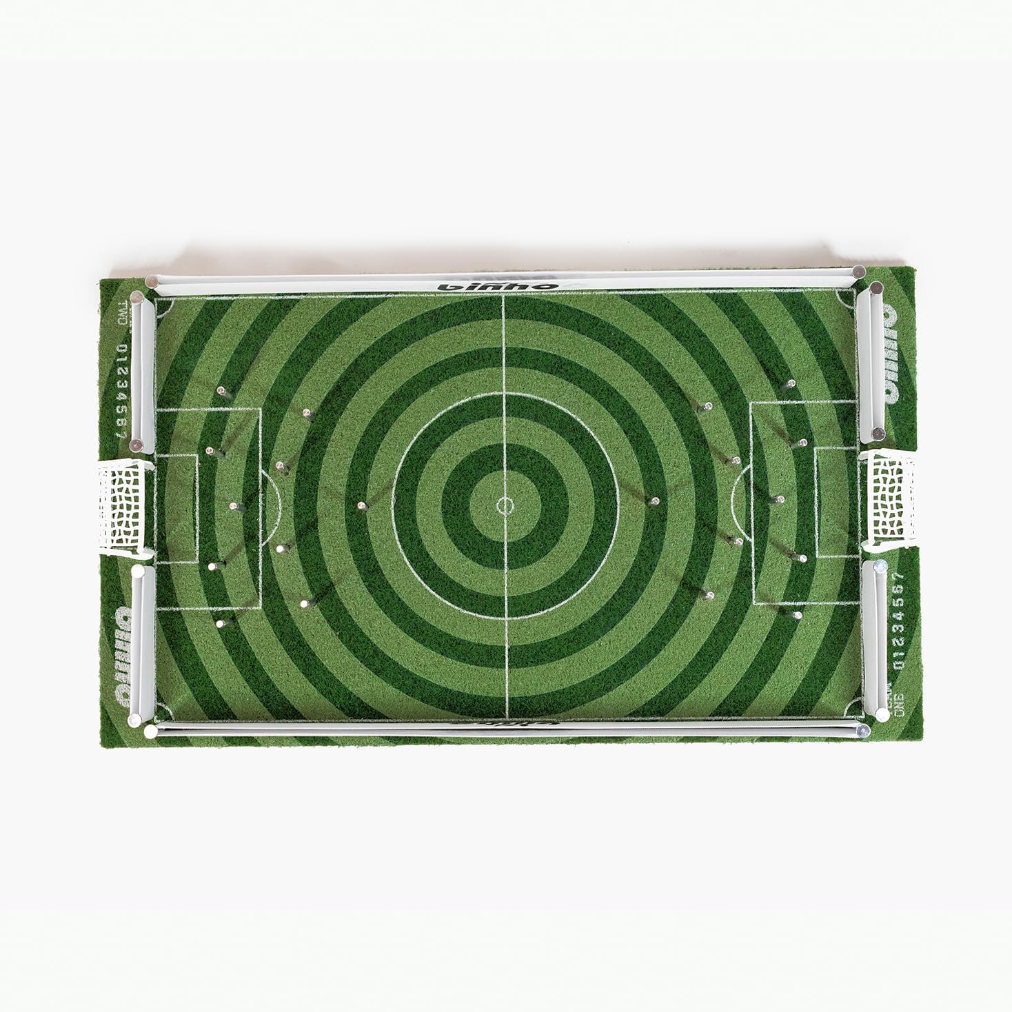 Binho Board Game Circle Stripes Edition - Inspired by the traditional finger-flicking games, this board game is a modern spin from the classic paper football, bubble hockey, and foosball. This edition features a felt-type playing surface (think pool table but a little thicker) to ensure straighter shots and a quicker pace than the other boards. It also creates some pretty wild shots because of the printed circle pitch patterns.