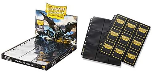 Dragon Shield 18-Pocket Pages have rounded corners and soft-touch edges that eliminate sharp edges for good. The obvious choice for your home collection that fits perfectly with your Slipcase Binders! 50 tough polypropylene binder pages. 18 side-loaded card pockets/page. Ultra clear pockets on a black textured backing designed for longevity and style. Made for standard size cards measuring up to 63x88mm (2??x3??).