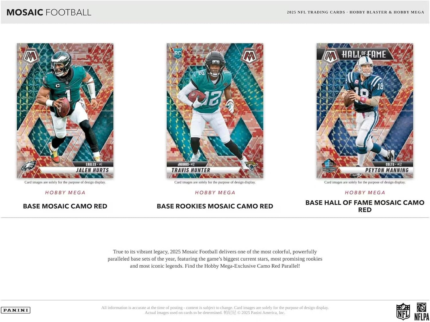 True to its vibrant legacy, 2025 Mosaic Football delivers one of the most colorful, powerfully paralleled base sets of the year, featuring the game's biggest current stars, most promising rookies and most iconic legends.