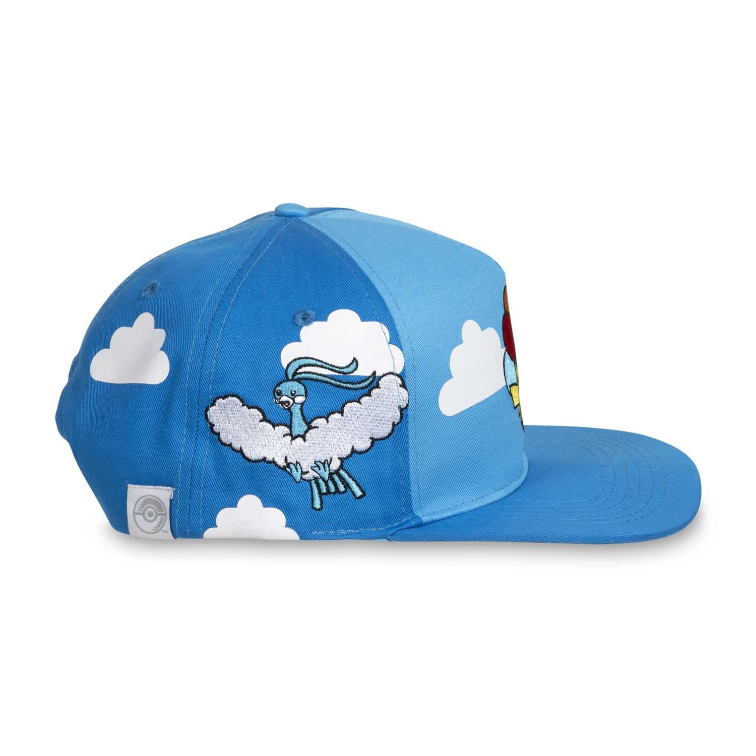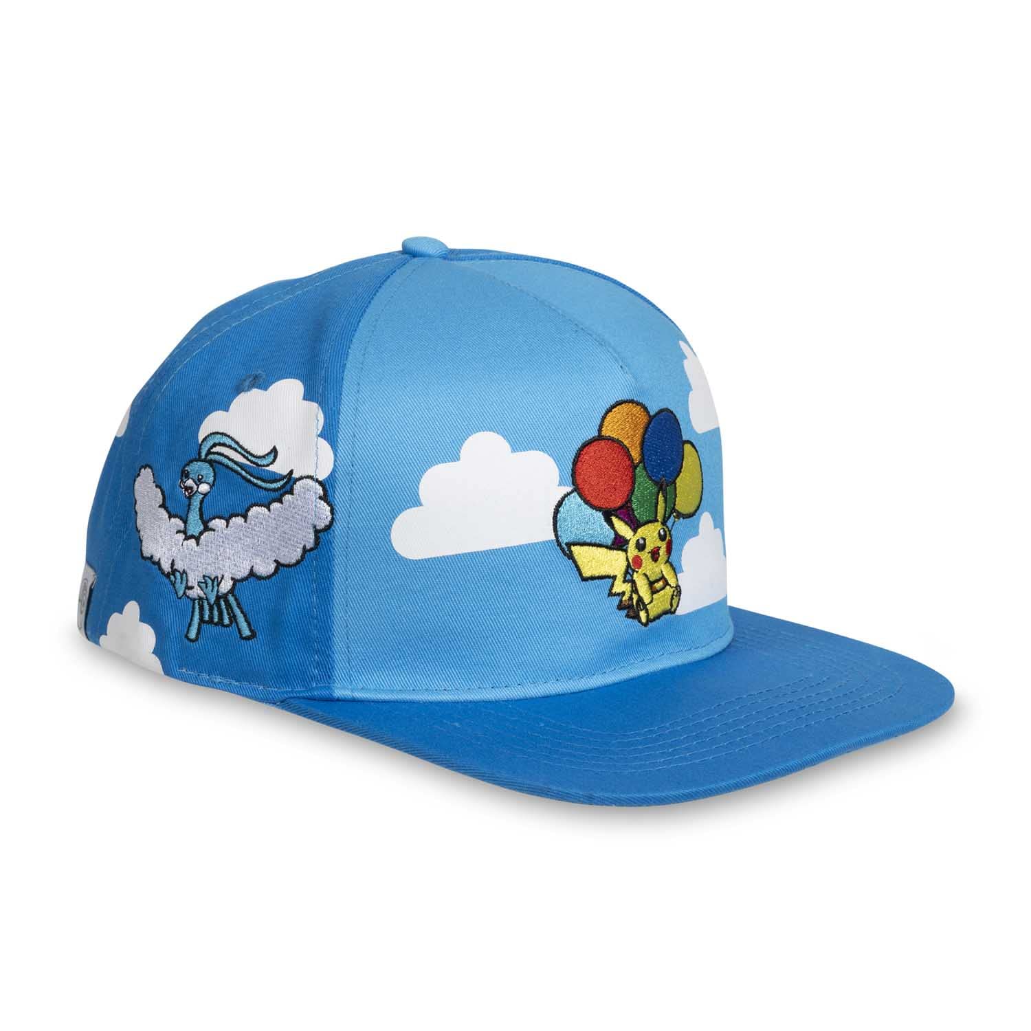 Pikachu is thrilled to be flying through the wide open sky along with Swablu and Altaria on this fun snapback cap! Featuring detailed embroidery on three sides, along with screen print clouds all over, it's an eye-catching pick for days when you're out and about. Detailed embroidery on front and side panels Adjustable snapback closure for a custom fit Pok?mon Center Original
