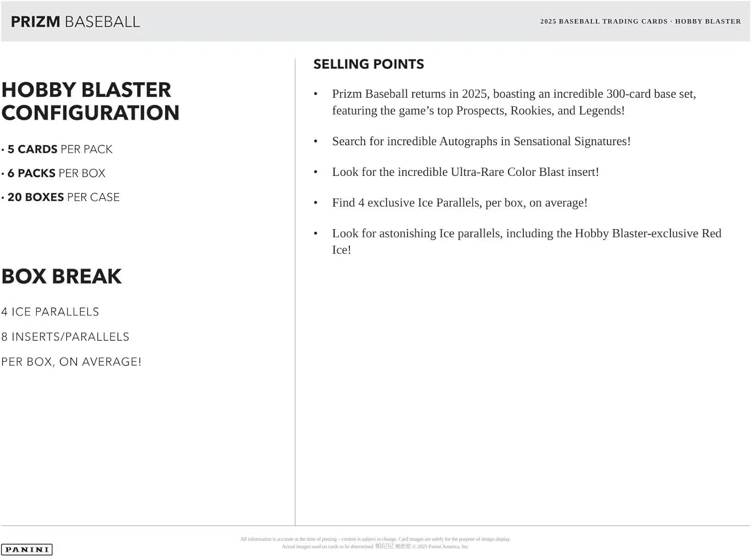 2025 Panini Prizm Baseball 6-Pack Hobby Trading Card Blaster Box (Find 4 Exclusive Ice Parallels Per Box)