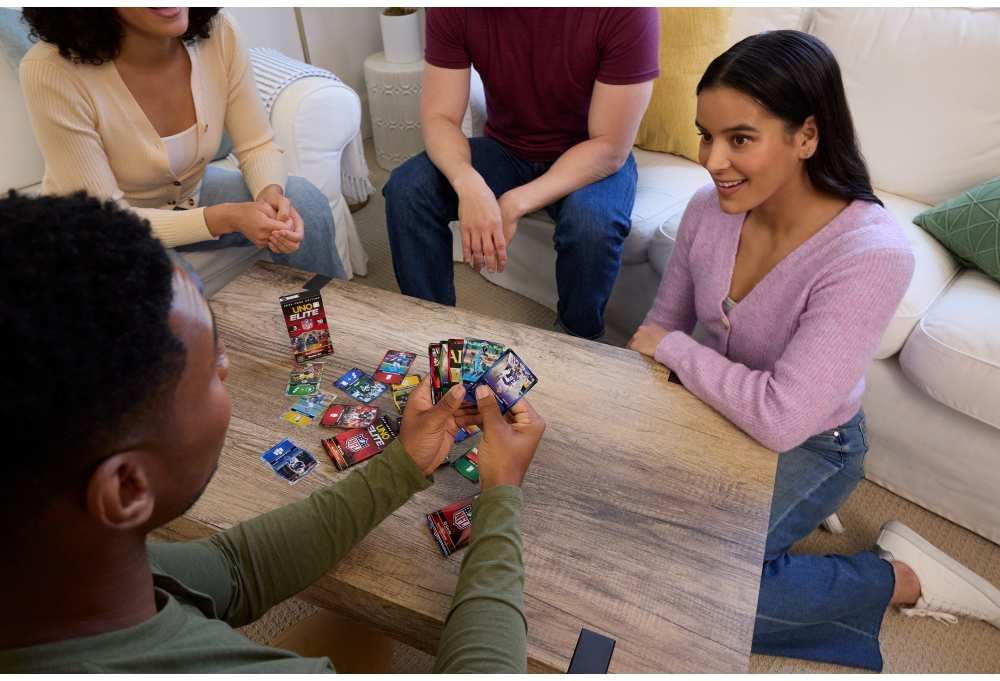 Boost your NFL player lineup with officially licensed UNO Elite NFL Booster Sets! Note: You'll need the Starter Pack, included in the UNO Elite NFL 2025 Core Edition (sold separately). Each UNO Elite NFL Booster kit comes with 3 expansion packs, containing 10 Elite Action cards each, totaling 30 extra cards. Wonder which NFL stars you'll discover? Over 2,000 Elite Action cards are available to enhance gameplay! Each card features a player and triggers a special power when a matching color card with the Elite icon is played. Some packs include Double Color or Wild cards. And when you're down to your last card, shout it out: "Hut, hut, UNO!" It's an irresistible gift for card game and NFL fans, ages 7 and up. Each kit is sold separately, subject to availability.