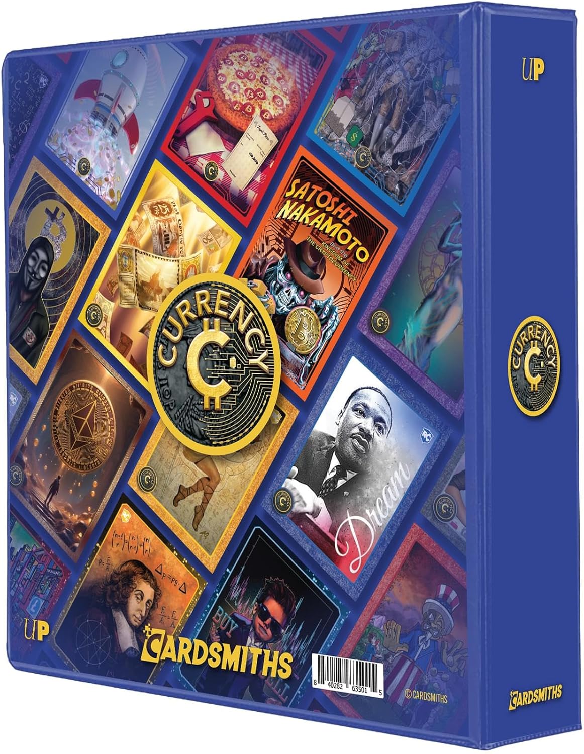 Artwork for Enthusiasts: The binder's cover showcases striking artwork inspired by Currency Series 1-4 trading cards, appealing to serious collectors