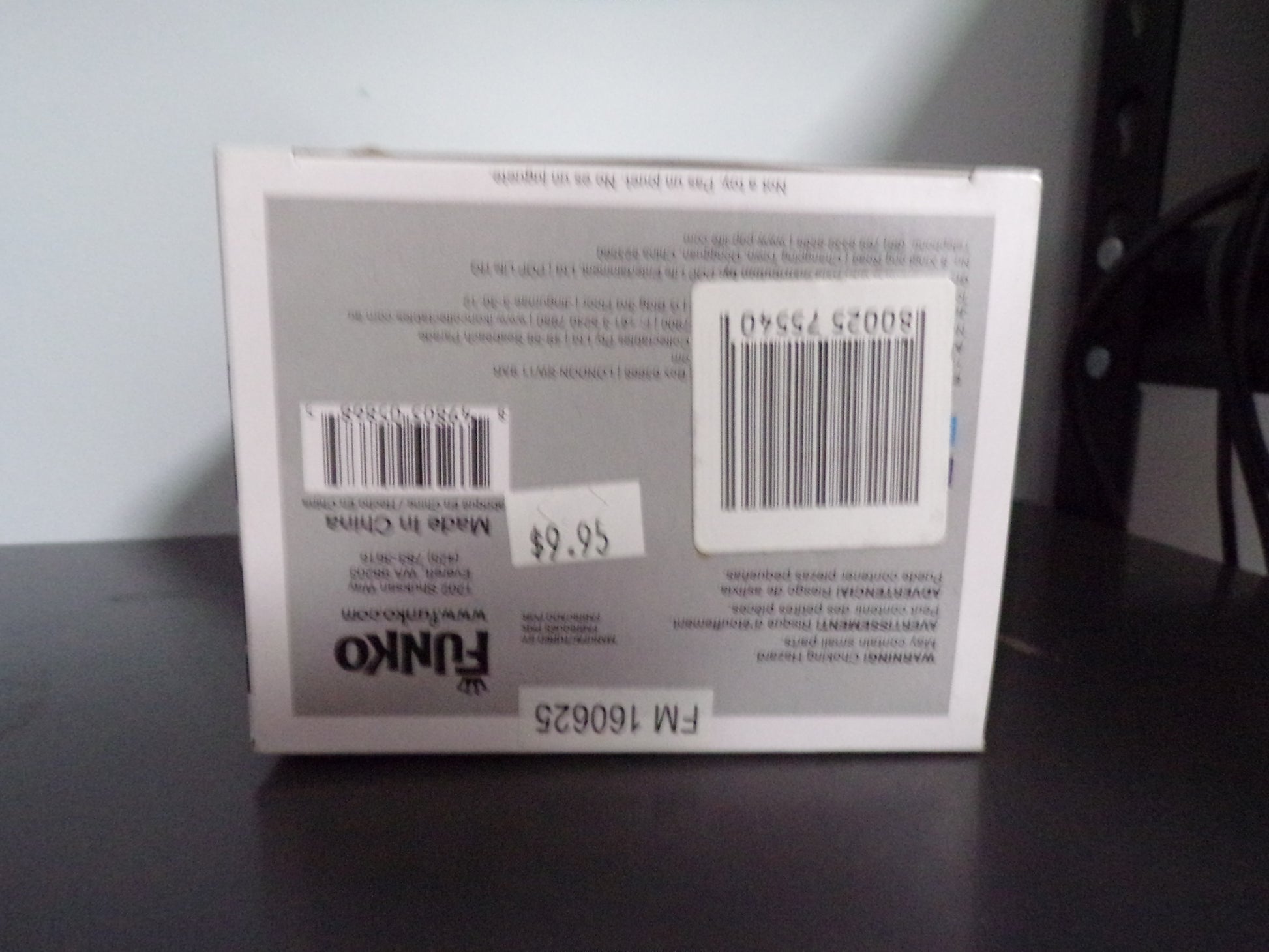Sold as is. The box has some box wear and tear and a barcode sticker and price tag (please see photos). Please inspect the photos carefully for the condition of the item. The pop itself has never been removed from it's original packaging. Due to the wear and tear, the price is less than the estimated value of the figure. Great deal for those out of box pop collectors!!!