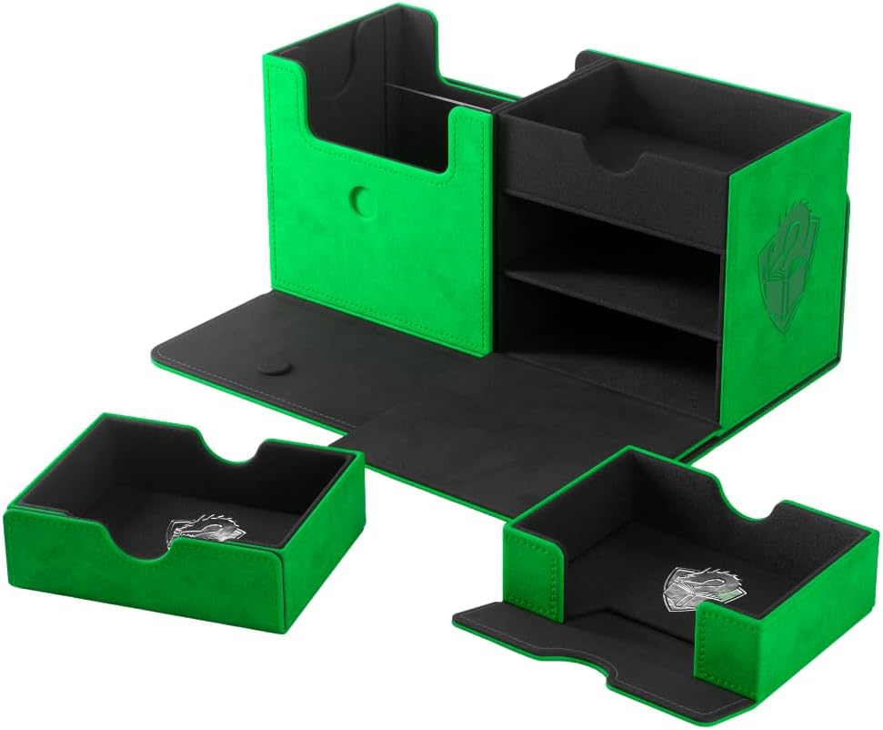 CONVENIENT GAME STORAGE: The deck box features a premium acrylic compartment divider, two removable hidden drawers with ingenious magnetic flaps, as well as extra slots for even more gaming accessories. Equipped with the highly-rated CONVERTIBLE system, the removable cover clips to the bottom, saving precious space on the table.