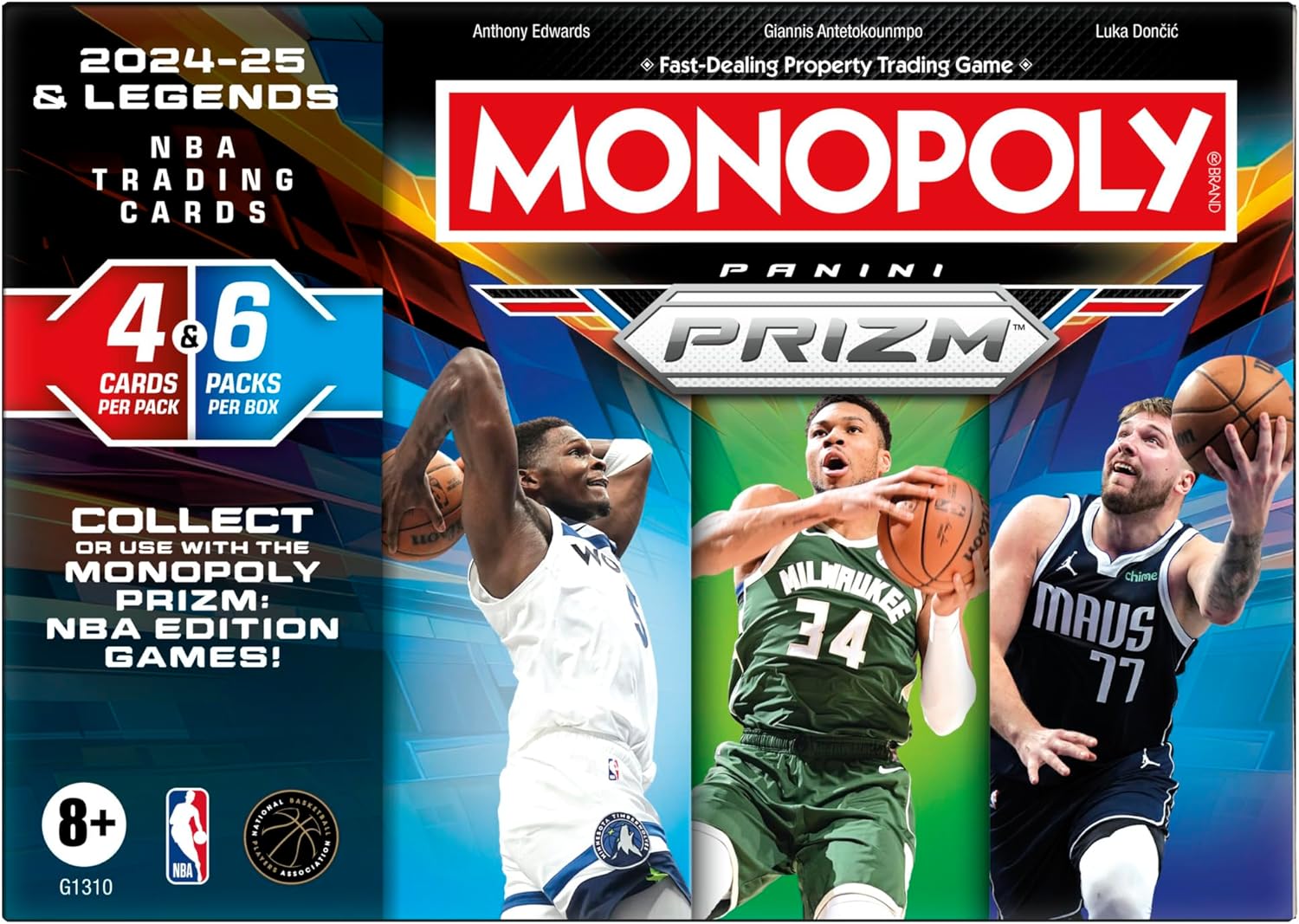 MONOPOLY PANINI PRIZM 2024-25 AND LEGENDS NBA CARDS: This Monopoly Panini Prizm: 2024-25 & Legends NBA Trading Cards Booster Box includes 24 NBA trading cards, featuring 2024-25 season stars and NBA legends