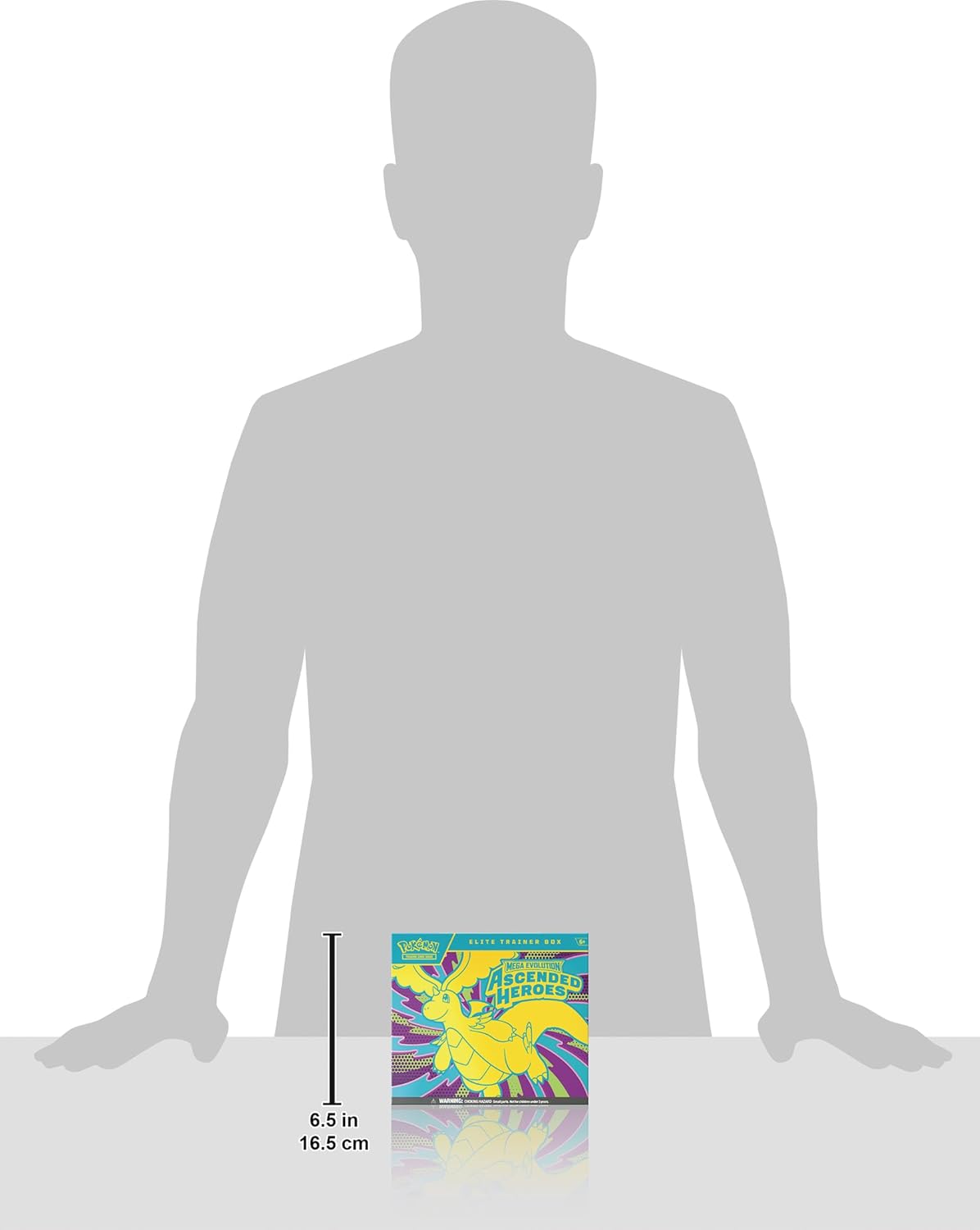 The Pokémon TCG: Mega Evolution—Ascended Heroes Elite Trainer Box includes 9 Pokémon TCG: Mega Evolution—Ascended Heroes booster packs, 1 full-art foil promo card featuring N’s Zekrom, and 65 card sleeves.