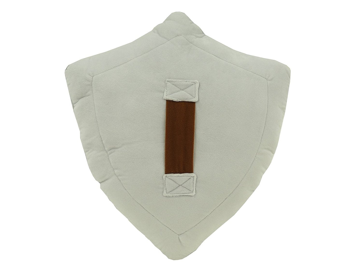 This soft cushion measures about 40cm long, 38cm wide and 12cm deep and features Link's Hylian Shield from "The Legend of Zelda" game series!