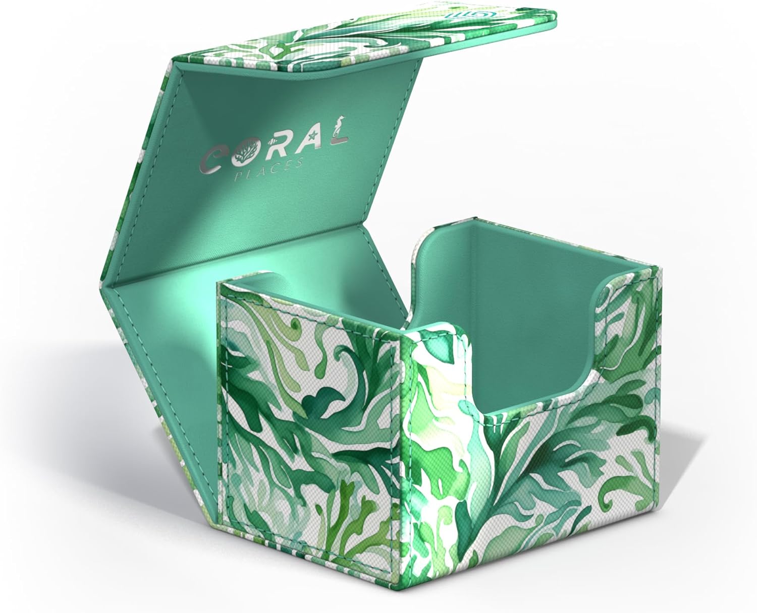 Dive into flourishing underwater worlds with the 2025 Exclusive Sidewinders from Ultimate Guard! The sustainable Coral Places deck boxes are made from 52% recycled materials and, in addition to the durable Xenoskin surface, have a strong magnetic closure and a high-quality microfibre inner lining so that up to 100 (double-sleeved) or 120 (single-sleeved) cards can be stored safely. The plastic-free packaging is also made entirely from recycled paper and cellulose-based film.