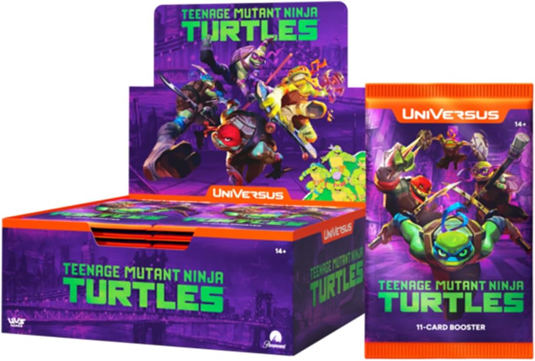 Get ready to kick some shell—the Teenage Mutant Ninja Turtles are coming to UniVersus! This action-packed booster set features over 180 cards inspired by Tales of the TMNT, Mutant Mayhem, the classic 80s cartoon, and retro action figures.